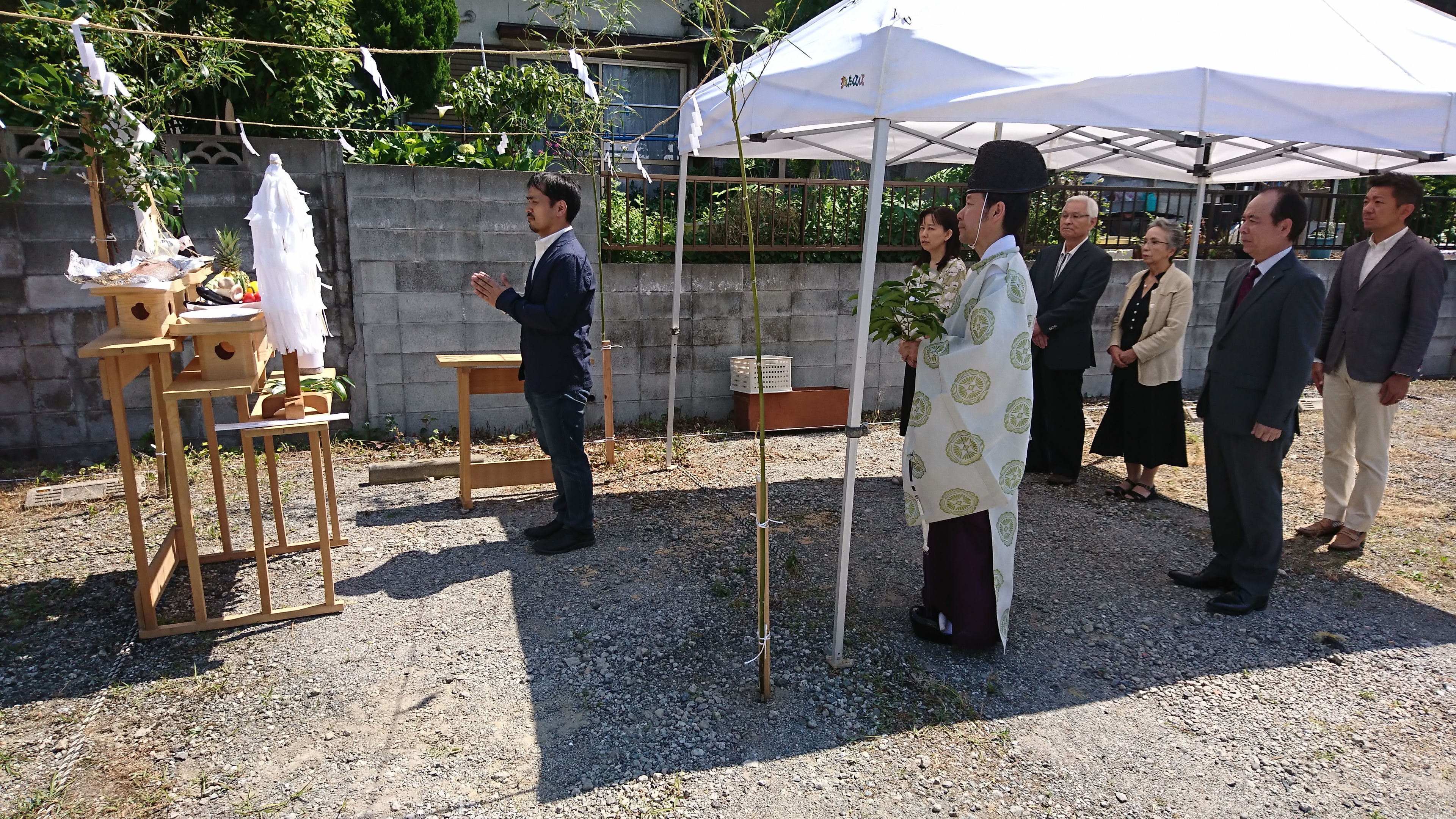 2017.05.30 地鎮祭-東区T様邸- こんにちは。 先日の日曜日に東区T様の地鎮祭が行なわれました。 良い天気過ぎて日中は29℃と暑い中…^^; 6月より着工開始致します。 最後は全員で記念撮影^^ 午後からは久山町での見学会にもお越し頂きまして 一日お疲れ様でした。T様、引き続きよろしくお願い致します。