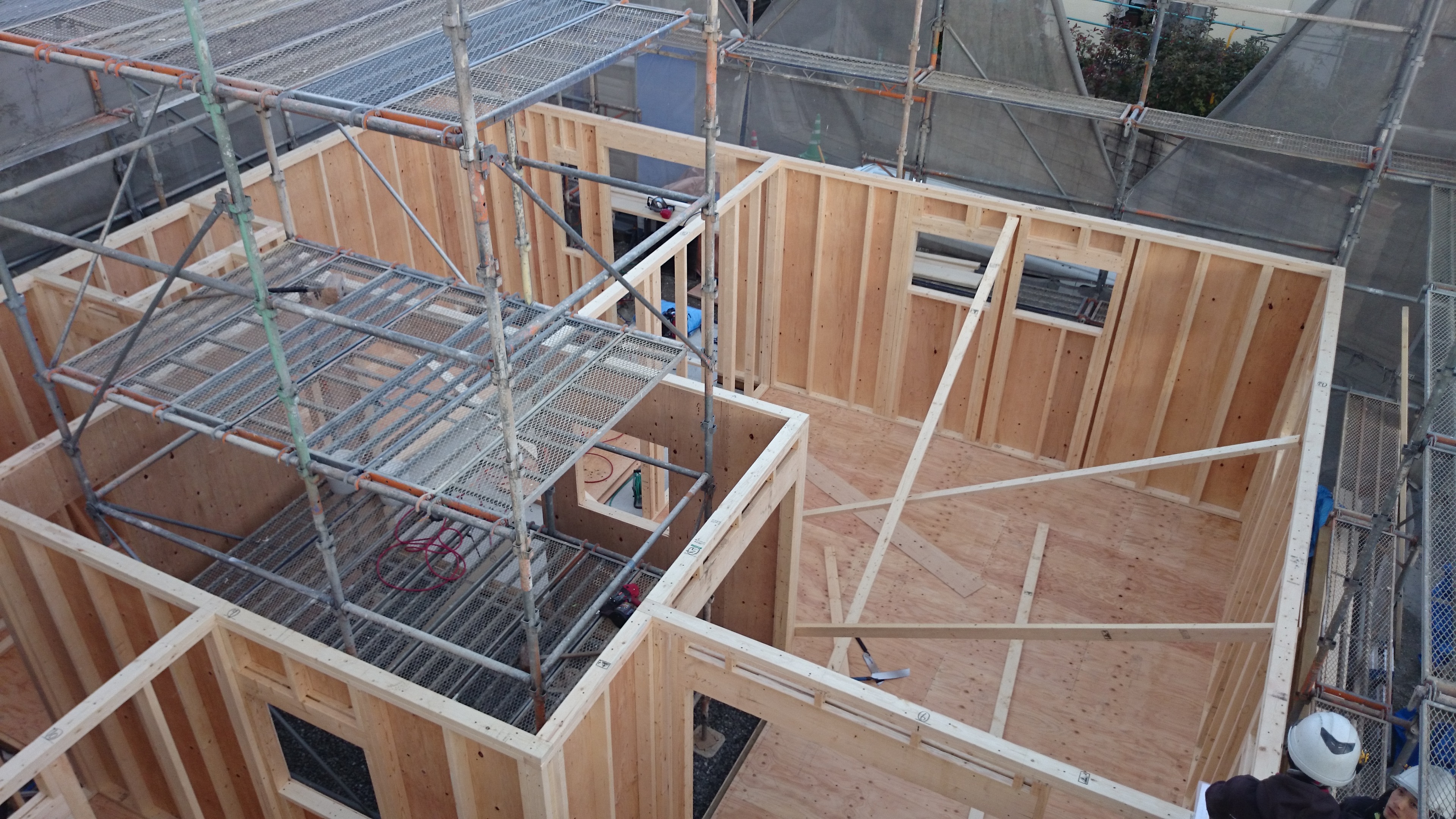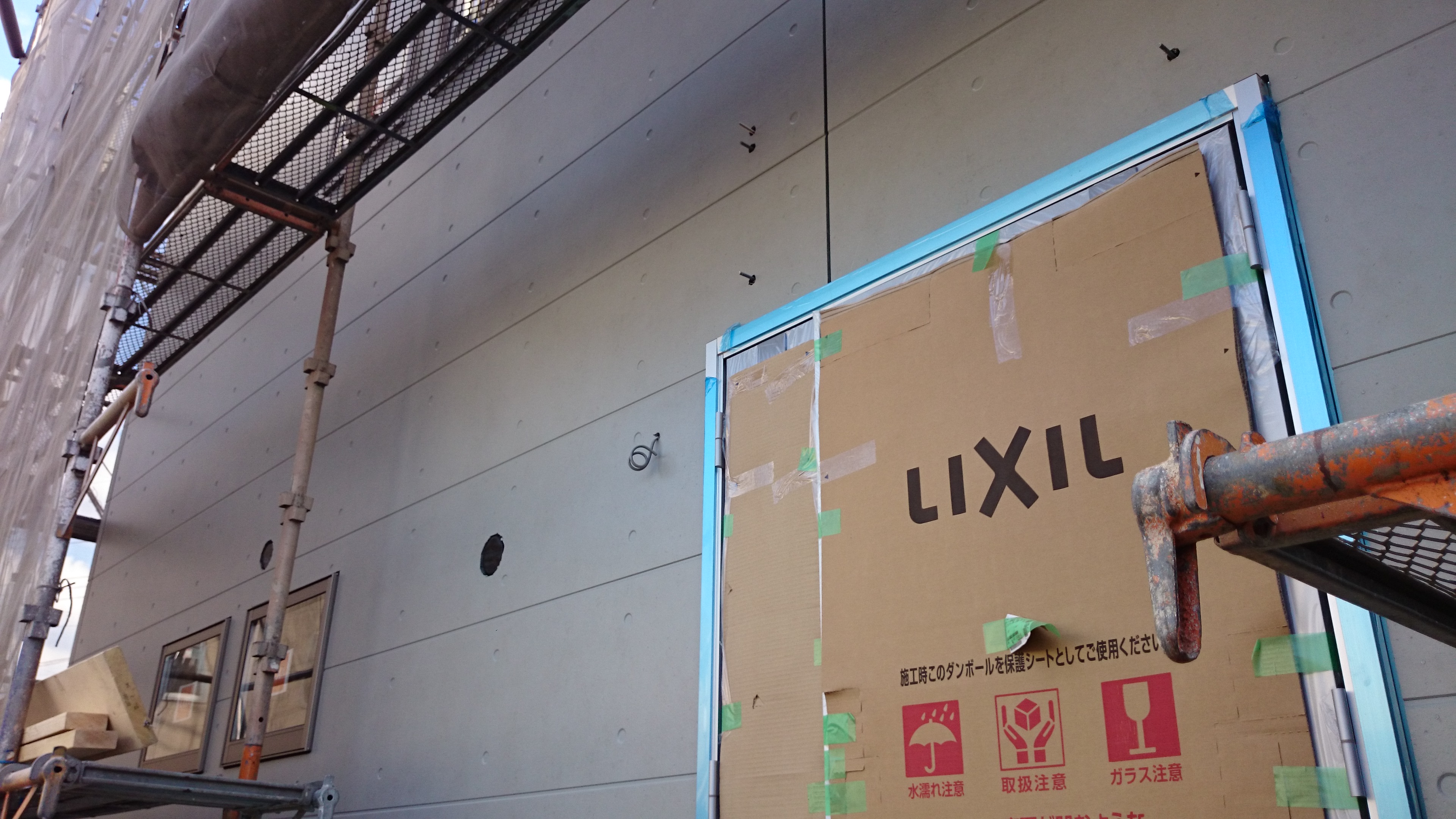 今週は寒いながらも天気に恵まれ、外壁を貼っているところです。