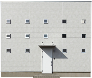 こちらの建物はコンクリート調の外壁材を使っております。