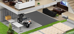 nakamaの大きな魅力のひとつは中2階を設けたことで生まれた収納スペースです。戸外から直接出入り可能なトランクルームは、園芸用品や大工道具等の倉庫として、また階段下の多目的スペースは、季節のしつらえ空間、書庫、骨董品収集、ペットルーム等使い方はまさに自由自在。あなたは、どんな空間にしますか?